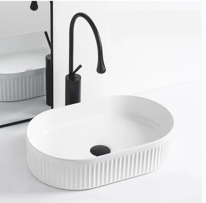 The Cora 58 Above Counter Fluted Oval Basin series introduces elegant fluted basins designed to add a distinctive and harmonious touch to your bathroom aesthetic. Available in Gloss White, Matt Black, and Matt White, this collection features a round shape with a smooth, modern design that is perfect for both contemporary and minimalist bathroom settings. The elegant fluted texture enhances the basin's visual appeal while providing a functional, high-quality product.