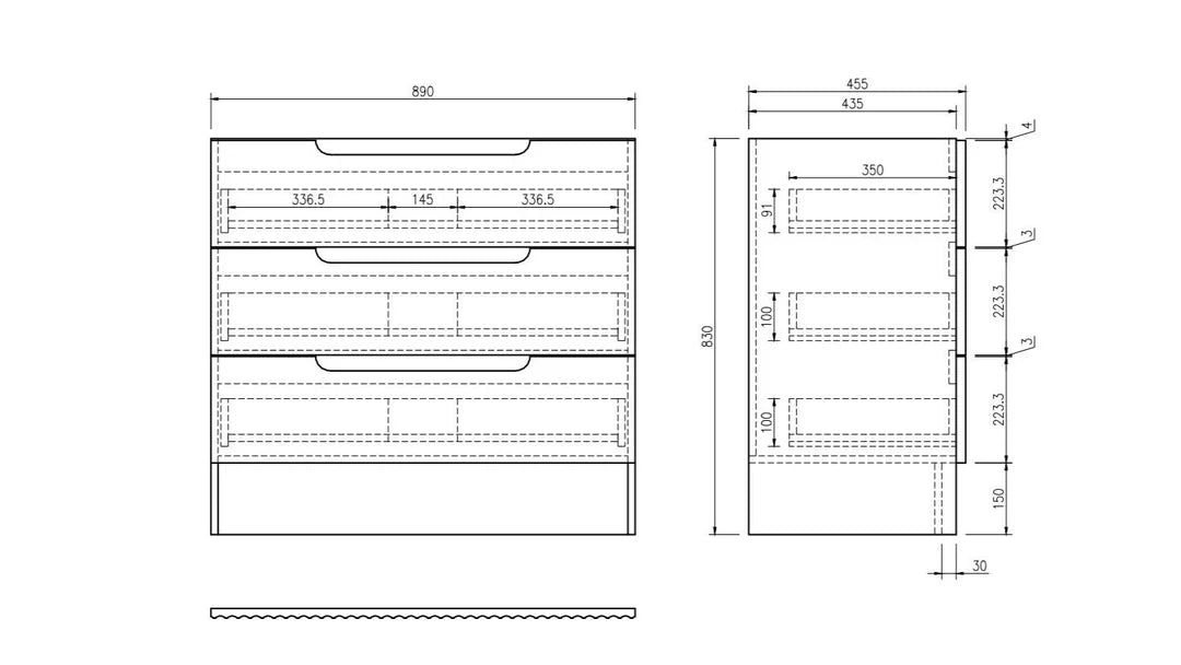 Effortless Handle-Free Operation - The three-drawer finger pull-to-open mechanism allows for easy access, creating a clean, uncluttered look without the need for traditional handles.
