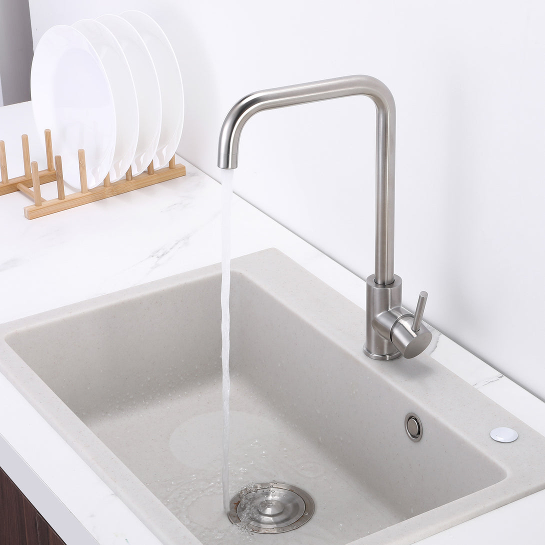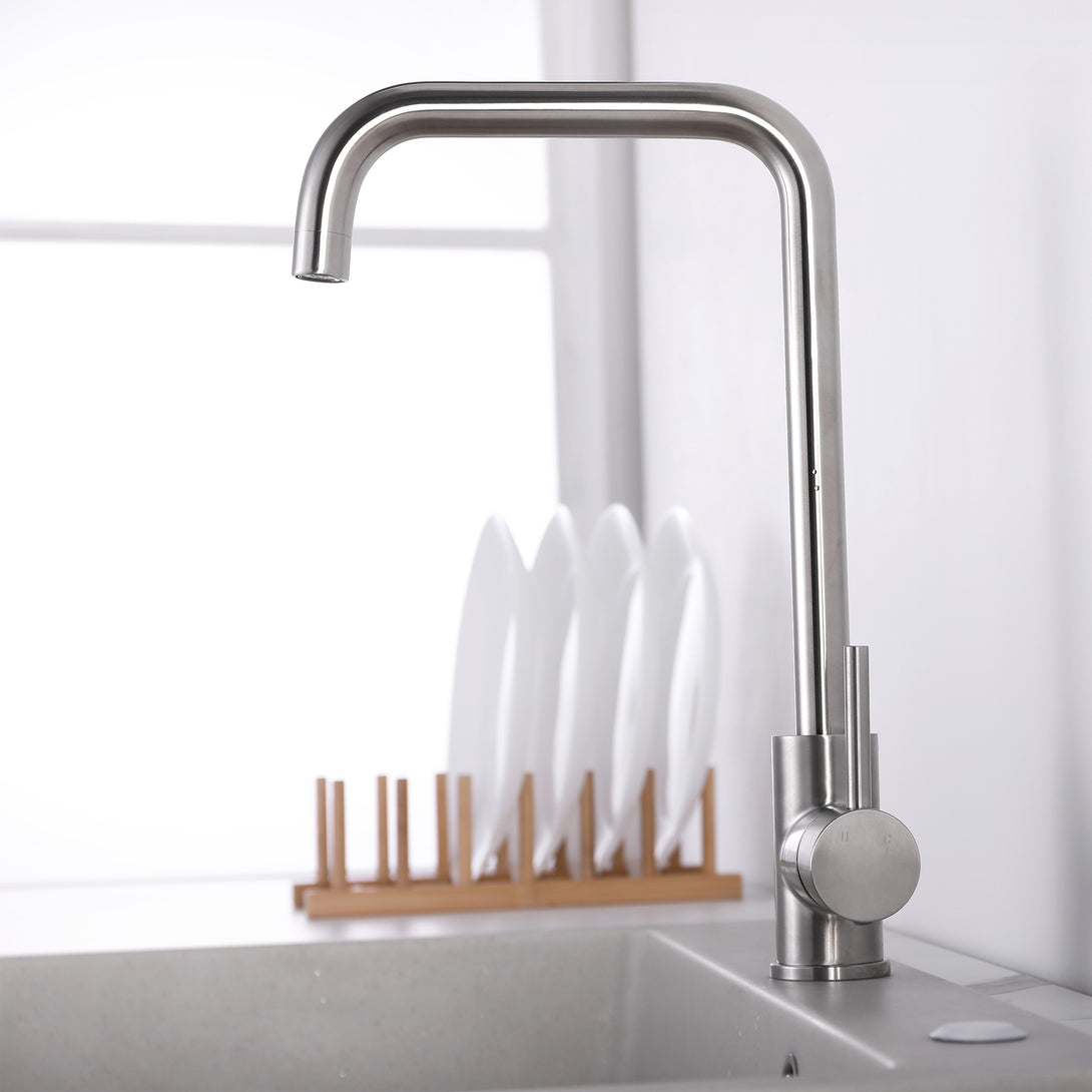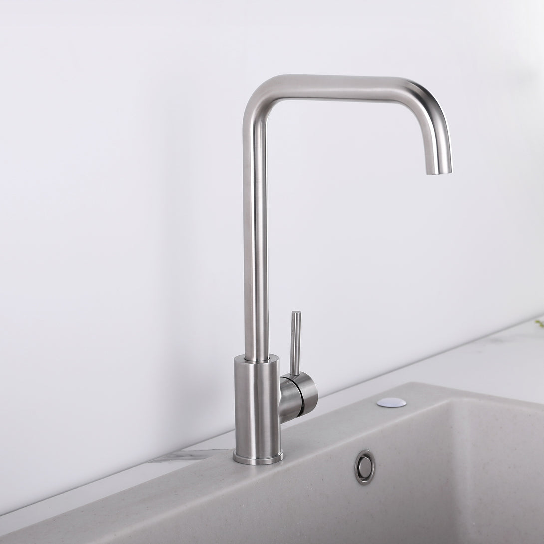 Upgrade your kitchen or laundry with the YC-8202 Gooseneck Kitchen Mixer Tap. Designed with clean lines and a sleek square-arc spout, this mixer provides both aesthetic appeal and everyday practicality. The single side lever ensures smooth water and temperature control, while the stainless steel/brass construction offers long-lasting performance.