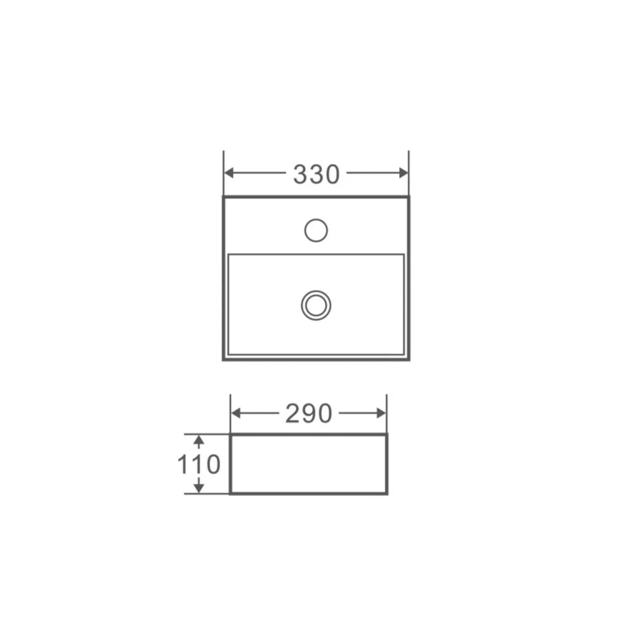 - Dimensions: 330 x 290 x 110mm – compact and space-saving for small bathrooms.