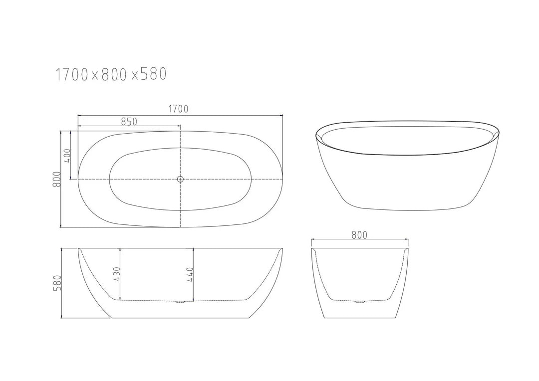 1700mm Model: 1700mm (L) x 800mm (W) x 580mm (H)